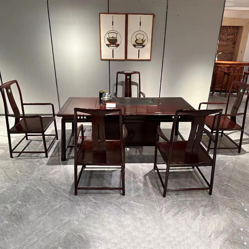 U kunt er zeker van zijn dat u de nieuwe Chinese eenvoudige theetafel in onze fabriek koopt. Het is zorgvuldig vervaardigd door de Chuantianjiang Redwood Factory en gemaakt van kostbaar ebbenhout. Ebbenhout zelf is van uitstekend materiaal, hard hout en een prachtige textuur, wat een hoogwaardige basis legt voor de theetafel. De nieuwe Chinese eenvoudige theetafel is gemaakt van stevige materialen en de dikte en realiteit zijn voelbaar in elk onderdeel, waardoor de stabiliteit en duurzaamheid van de theetafel wordt gegarandeerd. Het ontwerp van de fauteuil is sfeervol en luxe. Vanuit vormoogpunt zijn de lijnen van de armleuningen vloeiend en natuurlijk, wat overeenkomt met de ergonomie. Het algehele ontwerp is eenvoudig, integreert de nieuwe Chinese stijl en straalt een modieuze sfeer uit.
