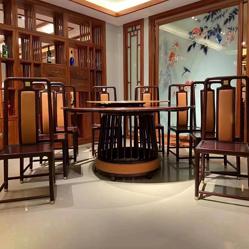 U kunt er zeker van zijn dat u een nieuwe ronde eettafel van palissanderhout in Chinese stijl in onze fabriek koopt. Dit product is een samensmelting van nieuwe Chinese stijl en moderne eenvoud. We bedienen meer dan 400 dealers in het hele land en zijn een modern meubelbedrijf van palissanderhout dat ontwerp, onderzoek en ontwikkeling, productie, productie en verkoop van palissander meubelen integreert.